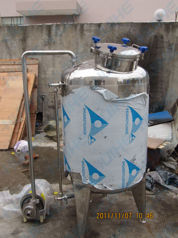 開放式發(fā)酵罐:將經過破碎、二氧化硫處理、成分調整或不調整的葡萄果漿,用泵送入開口式發(fā)酵桶(池)至桶容約4/5,留空位約1/5預防發(fā)酵時皮渣沖出桶外,最好在一天內沖齊。加入培養(yǎng)正旺盛的酒母3-5%乃至10%(按果漿量計),根據具體情況而定。