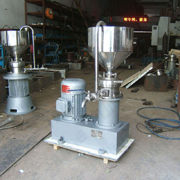 膠體磨屬于超微粉碎設備,兼?zhèn)浞鬯、乳化、分散、攪拌等功能,可以代替石磨、砂磨機、球磨機、組織搗碎機等。膠體磨也可用于均質。一般來說,其細化作用要弱于均質機,但它對物料的適應能力較強(如高粘度、大顆粒),所以在很多場合下,它用于均質機的前道或者用于高粘度的場合。在固態(tài)物質較多時也常常使用膠體磨進行細化。有時,膠體磨與均質機可以通用,但一般來說,在21Mpa條件下,膠體磨的能量水平小于均質機。