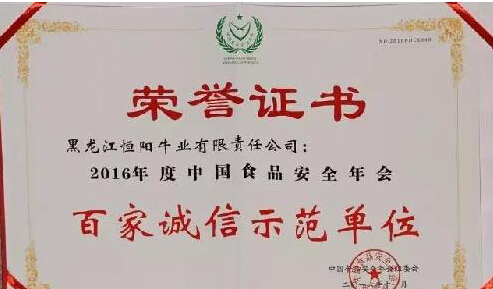 黑龍江恒陽牛業(yè)有限責任公司在本屆年會上被評為“百家誠信示范單位”、“管理創(chuàng)新三十佳案例”,還被本屆年會的承辦單位——中國食品安全報社授予“2016—2017年度中國食品安全報理事單位”,于曉鵬總經(jīng)理還榮膺中國食品安全年會組委會授予的“普法先進工作者”稱號。