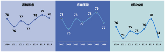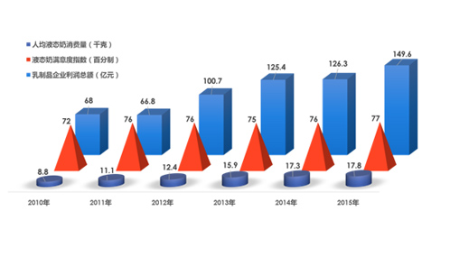一、2016年液態(tài)奶行業(yè)滿意度得分76分(滿分100分),比2015年降低1分。品牌形象、感知質(zhì)量和感知價值指數(shù)相比去年出現(xiàn)了不同程度的下降。從歷史數(shù)據(jù)上看,液態(tài)奶行業(yè)滿意度指數(shù)自2010年開始基本呈現(xiàn)調(diào)整上升的趨勢,與此同時,人均液態(tài)奶消費量和乳制品企業(yè)利潤總額均水漲船高。值得注意的是,2016年液態(tài)奶行業(yè)滿意度出現(xiàn)小幅下降,人均液態(tài)奶消費量的增速也在放緩,液態(tài)奶企業(yè)應重視影響消費者滿意度的因素并掌握未來液態(tài)奶的消費需求動向,以此作為未來營銷方向的重點。