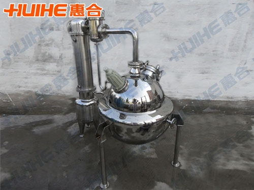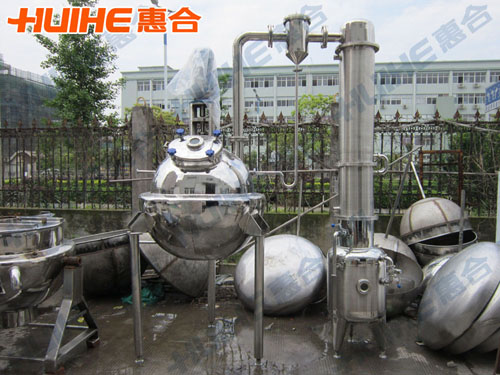 將球形濃縮器的真空口和進(jìn)料口閥門打開,將液料抽入罐內(nèi),罐內(nèi)液面達(dá)到一定高度后,關(guān)閉進(jìn)料閥,并緩緩開放蒸汽進(jìn)口閥門,將罐內(nèi)液體的沸騰數(shù)分鐘后,注意保持該時(shí)的蒸汽壓力和真空程序(亦可通過(guò)溫度控制,使沸騰正常進(jìn)行)。蒸餾液體通過(guò)分離器,其中部分回流至主體罐內(nèi)。不凝部分通過(guò)冷凝器冷凝成液進(jìn)入受料桶,進(jìn)行加收或排放,濃縮結(jié)束后,關(guān)閉真空口,蒸汽口閥門,打開放空口(即直嘴式旋塞閥)常壓后出料。