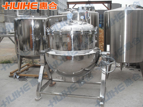 蒸煮鍋以蒸汽為熱源(也可選用電加熱),蒸煮鍋具有受熱面積大、液料沸騰時間短等特點。