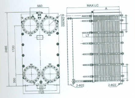 板式換熱器是由固定擋板、板片、移動(dòng)擋板、立柱、上導(dǎo)軌、下導(dǎo)軌及固定螺栓組成。在固定擋板及移動(dòng)擋板之間是一系列被固定的板片。每片板片均有墊圈,所以板片間構(gòu)成相互平行的封閉流道,介質(zhì)在每?jī)蓧K板片之間交替流動(dòng)。