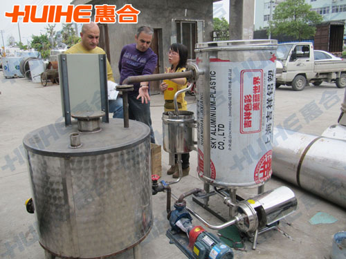 2、用膠體磨磨好的漿液用水稀釋后過濾,用120目紗布過濾,澄清的液汁注入罐中備用(注意控制用水量)。