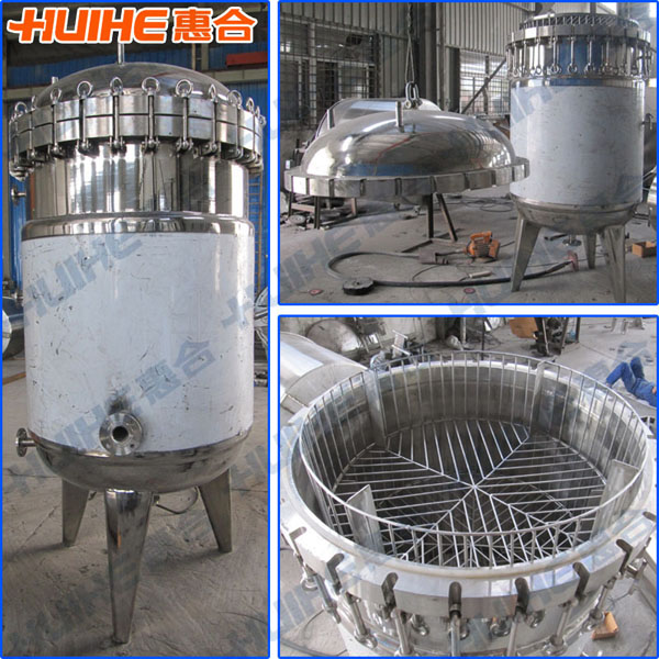 惠合生產(chǎn)的蒸汽蒸煮鍋也是一種通入蒸汽加熱物料的高壓蒸煮鍋,其材質(zhì)在客戶無特殊要求的情況下,內(nèi)外鍋體及撐角和可傾架等采用不銹鋼304或316L制造的。
