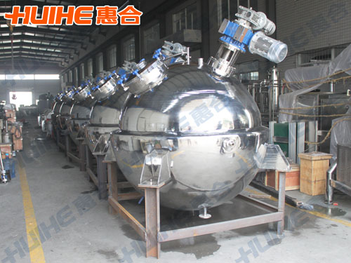 After investigations in many companies,clients from Chicago chose our Hangzhou Hui Machine Facture Co.,Ltd.These equipment had been finished in the scorching sun.After several times’ test, the equipment had been sent to Chicago on June 24th,2015.The equipment included: the spherical mixing kettle, roller, emulsifying tank, Vibration table, heat exchanger, filter, pump and conveyor.These photos were taken from the scene:
