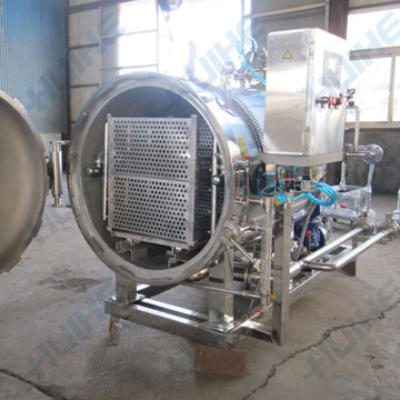 以罐頭為例,殺菌時,由于加熱使罐頭溫度升高,殺菌鍋罐頭內(nèi)壓力會超過罐外(在鍋內(nèi))的壓力。為避免殺菌時玻璃瓶罐內(nèi)增壓而跳蓋,對馬口鐵罐兩端面凸出,必須施加反壓力,特別是對需要較高殺菌溫度的肉類罐頭更就如此。