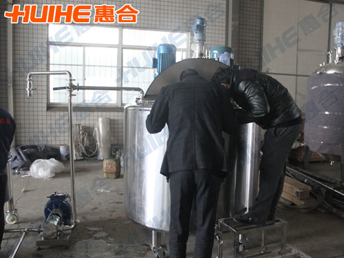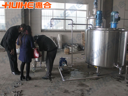 英國客戶需要加工類似蜂蜜的糖漿,欲采購不銹鋼容器用于其產(chǎn)品的加工。經(jīng)過與業(yè)務(wù)員的多次溝通協(xié)商,客戶于2014年11月底在我公司訂購1000L和100L各一臺乳化罐。歷時1個多月,設(shè)備終于順利完工。2015年1月9日,英國客戶來工廠驗貨,業(yè)務(wù)員和技術(shù)工程師對乳化罐作了詳細(xì)的講解,客戶對設(shè)備較為滿意。