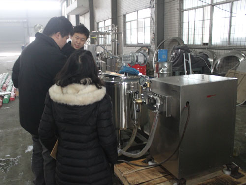 澳大利亞客戶因均質牛奶需要,于2014年在我公司購買一臺高壓均質機。由于不太熟悉均質機的操作,2015年1月28日, 澳大利亞客戶來我工廠現場學習,業(yè)務員與技術工程師熱情的對其進行了設備的操作指導。