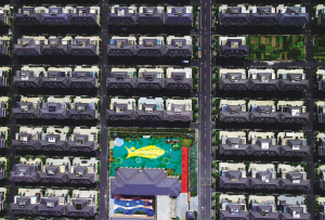 這一排排一模一樣的房子,在蕭山河莊街道,它叫向紅村。所有的房子都是按照一個(gè)圖紙建造,附近幾個(gè)村子都有一個(gè)統(tǒng)一的瓷磚顏色。